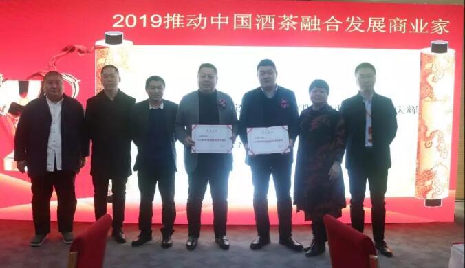 会上为表彰经销商对酒茶融合的贡献,活动现场还特别为酒茶生(北京)连锁商业有限公司董事长邹庆辉、琴台酒肆董事长吴书青颁发了“2019推动中国 酒茶融合发展商业家”奖项。