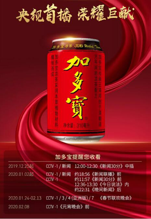 除此之外,近日加多宝官宣,炫酷大片即将在央视隆重首播,这是加多宝扩大传播声量,决胜春节的决心。如今,春节之战即将打响,加多宝不再沉默,胜终端,促动销,2020它能逆势翻盘,迎头赶上吗?