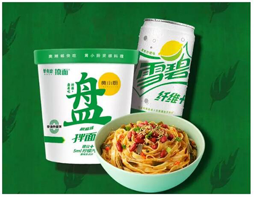 此外,单身粮还通过组建CP的方式推动品牌认知。去年8月,单身粮推出了“雪碧拌面”,联合黄小厨、雪碧打造,通过罐装雪碧+雪碧拌面的创新组合形式在全国800多家便利蜂率先进行售卖。