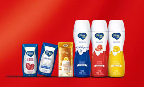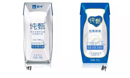 在产品配色上,经典利乐装纯甄采用了全新的视觉色彩,由灰白配色变更为蓝色,使 LOGO 图案和瓶身图案更凸现,在终端的可识别性更强。此前,蓝色装纯甄只在部分定制化产品中体现。