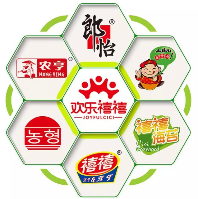 目前,力绿集团已成为国内海苔全产链的规模型企业,2019 年获得国家及省级高新技术企业称号,力绿集团的多品牌叠加策略也已形成巨大效应。旗下战略品牌“欢乐禧禧”定位中国风,成为新时代中国高端海苔坐标品牌,品牌认知深入人心;“农亨”品牌主张韩式潮流,攻占年轻一代的消费心智;“吴掌柜”品牌彰显泰式调性,全面引领海苔产业的时尚消费。