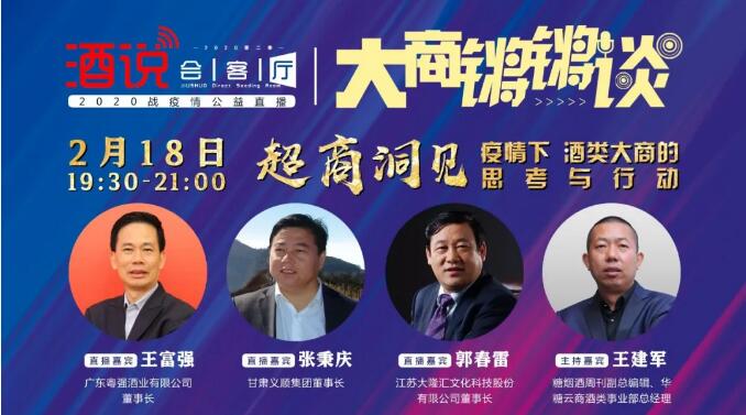 从2020年2月7日到3月2日,酒说会客厅一共进行了15期直播,邀请到了31位重磅嘉宾带来了诸多有价值的分享,获得了数十万酒业人的关注。在疫情之间,酒说(微信号:酒说)联合这些嘉宾通过直播的方式,为酒业带来了诸多新的思想和实战操作办法,得到了多方的支持和鼓励。今天,酒说特意将之前的酒说会客厅所有嘉宾金句做了整理,以飨读者。