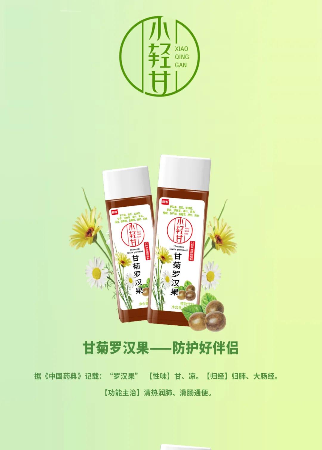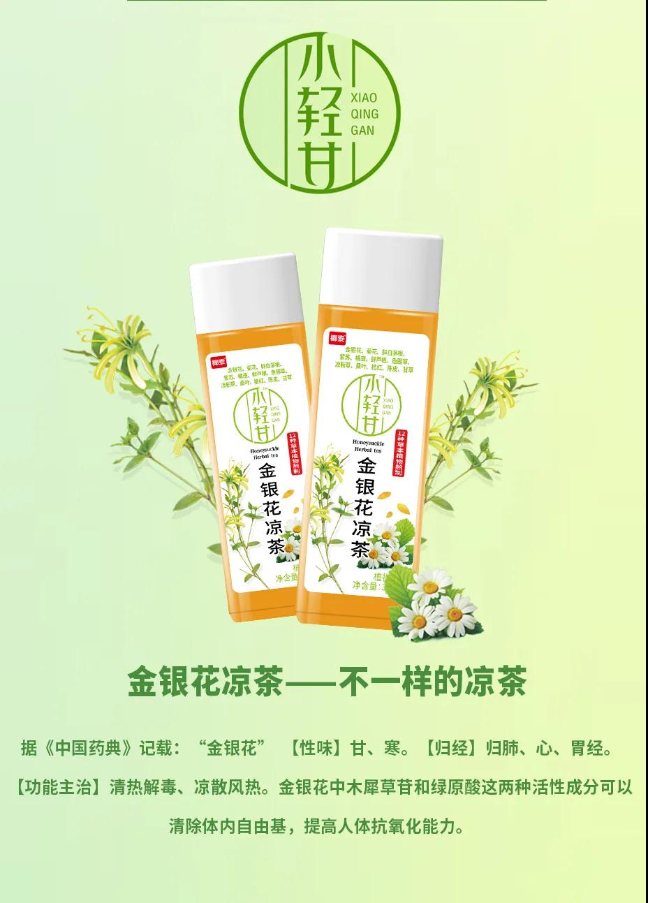 据悉,“小轻甘”产品理念来源于《中国药典》及中医典籍《本草纲目》,精选12味草本植物,根据不同特性与需求进行搭配,精心熬制成三种口感甘甜、口味自然的植物饮料,分别为金银花凉茶、甘菊罗汉果和甘菊金银花露,植物饮料产品矩阵初步形成。
