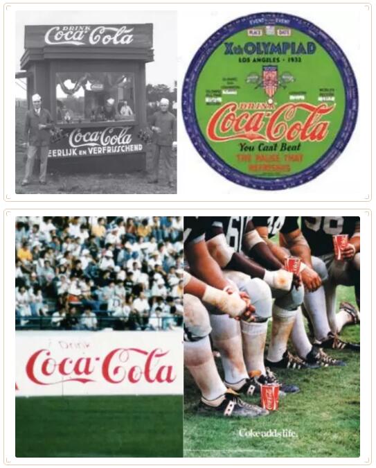 1928年和1950年,可口可乐分别一眼相中尚在“襁褓期”的奥运会和世界杯足球赛,大胆进行首轮”风险投资“,是为数不多的同时支持奥林匹克运动会与FIFA世界杯的赞助商,也是较早的支持者。