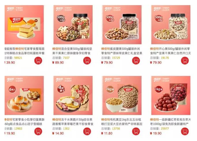 从产品类别来看,目前棒倍特品牌在售的商品涵盖开心果、新疆灰枣、腰果、板栗、混合坚果等坚果,以及水果脆片、海苔、蛋黄酥、鱼皮等零食,以及有机黄豆、有机小米等农产品。粗略估计,目前的棒倍特品牌仅有十余个SKU,该品牌正在发展的初级阶段。