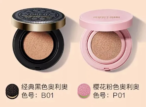 与此同时,奥利奥与网红国货品牌完美日记联名推出饼干气垫粉饼,一个是奥利奥的经典黑色,一个是奥利奥新推的樱花粉色。