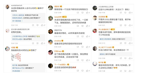 一是允许成年人有一颗童心,传达“尊重现实的一些失败和不顺,但是乐观心态去面对 ”的人生态度;二是主打新晋崛起的Z世代消费群体。 AD钙奶的消费者以80/90后人群居多,对他们来说,喝AD钙奶,吃“未成年雪糕”,都仿佛能够穿越回到那个“纯真年代”,享受片刻的童心与无忧。