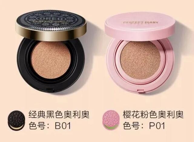 与此同时,奥利奥与网红国货品牌完美日记联名推出饼干气垫粉饼,一个是奥利奥的经典黑色,一个是奥利奥新推的樱花粉色。