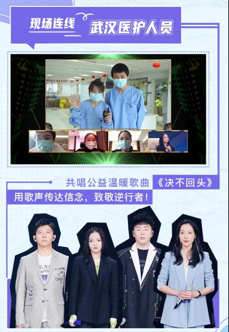 过去这段时间,金典携手《天赐的声音》节目开启了献歌、致敬、连线“爱心公益三部曲”:以歌发声,联合胡彦斌、胡海泉、汪苏泷、于文文、王力宏等音乐人,打造了《决不回头》、《我们在一起》、《坚信爱会赢》三首公益歌曲,用音乐抚慰人心、传递人心;致敬女神,在3月8日,向所有“女神”医务工作人员表示敬意;现场连线,在《天赐的声音》节目中,与武汉抗疫一线人员进行现场连线,共唱《绝不回头》,用歌声传达信念。