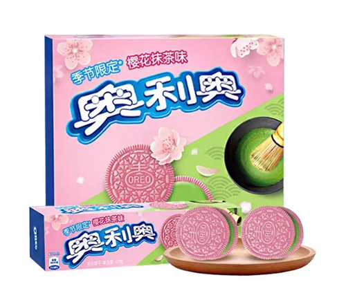 已经108岁的奥利奥在营销方面一向创意十足,从奥利奥DJ台到搭建奥利奥故宫,每次热点都抓得创意又精确。今年春季,奥利奥夹心饼干也推出两款限定口味——樱花抹茶和白桃乌龙。