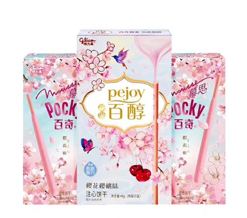格力高集团于1999年成立了上海江崎格力高食品有限公司,开始进军中国市场,百奇和百醇是其旗下两个非常受欢迎的饼干系列,有日系血统的格力高自然不会错过樱花季。