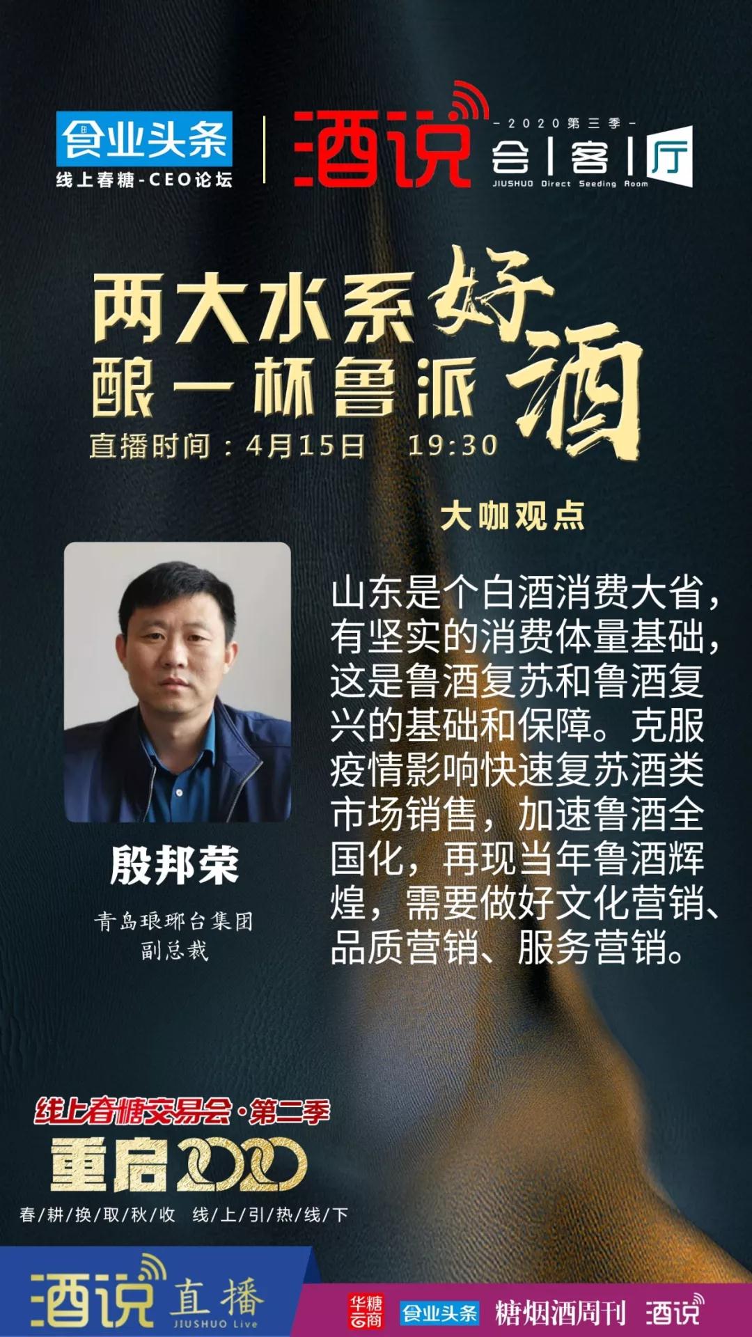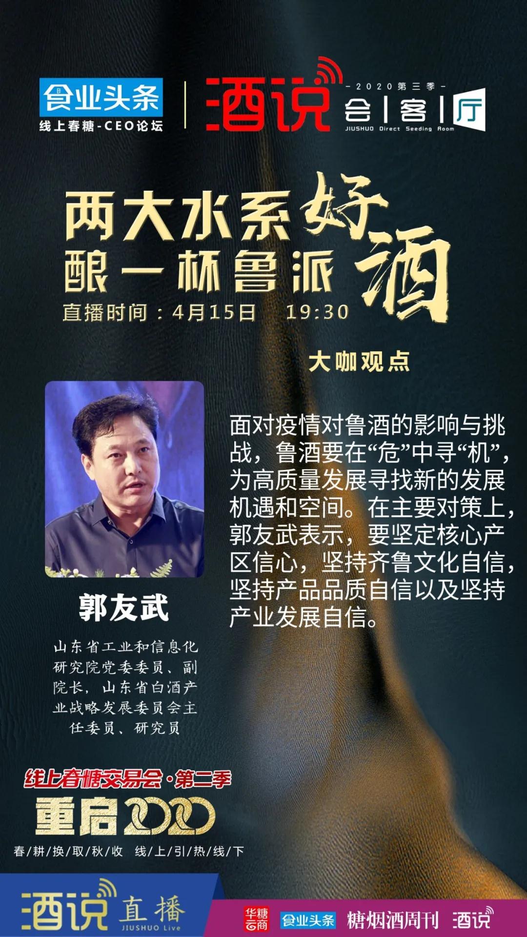 如今,随着后疫情时代开启和复产复市加快,白酒业2020年发展逐渐进入正轨。而鲁酒产区作为在酒业历史上产生过重要影响的酒类产区和白酒区域品牌较为集中的核心板块,其发展状况备受行业关注。为深入探讨疫情后鲁酒产区发展和鲁酒市场经营策略与机遇,华糖云商“酒说会客厅”联合“线上春糖CEO论坛”特别推出“直播鲁酒”系列活动。