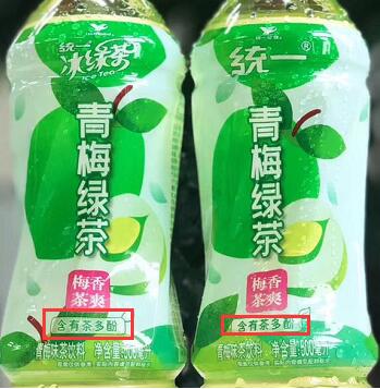 值得注意的是,青梅绿茶的包装着重突出“茶多酚”标识,茶多酚能够有效清除跑步时产生过量自由基,这成为了统一青梅绿茶的一大亮眼卖点。