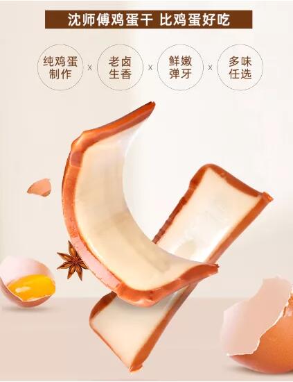 2019年是沈强接手沈师傅的第二年,也是沈师傅鸡蛋干经典单品销售突破19亿的年份。中国是美食大国,提到肉类深加工,有火腿、午餐肉、香肠等制品,提到奶,有酸奶、奶酪、布丁等制品,而唯独提到鸡蛋深加工,很多人脑海中会出现一片空白。而沈师傅鸡蛋干,洽洽弥补了这个空白。