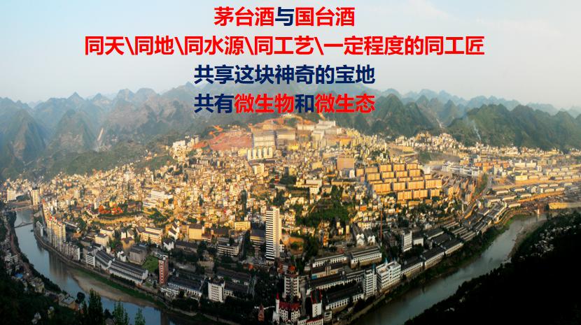大家知道,离开茅台镇酿造不出茅台酒,这是由茅台镇的水源、土壤、气候、气温、微生物环境所决定。茅台镇四面环山,一水中流,是驰誉中外的酿酒“宝地”。茅台镇独特的自然地理环境中的几大要素,如土壤、水质、气候以及空气中的微生物群等,对茅台酒独特风味的形成起到了决定性的作用,造就了茅台酒卓尔不凡的典型风格。其中茅台酒的主体香——酱香的形成,正与这自然生态圈中特殊的微生物群落息息相关。