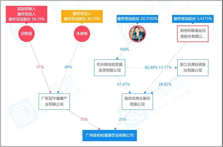 此次,娃哈哈以轻资产加盟方式布局茶饮店市场。企查查显示,娃哈哈奶茶系列产品由广州娃哈哈健康饮品有限公司运营,公司成立于2019年10月29日,公司股东为广东冠华健康产业有限公司、娃哈哈商业股份有限公司。企业收益股东中包含娃哈哈董事长宗庆后,最终受益股份为20.3102%。