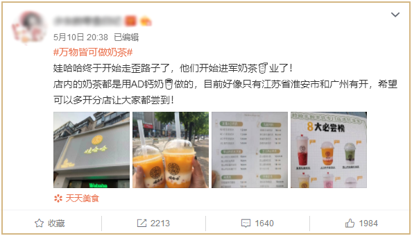 据悉,不止有娃哈哈AD钙奶,未来还有可能加入八宝粥的元素进行奶茶口味创新。