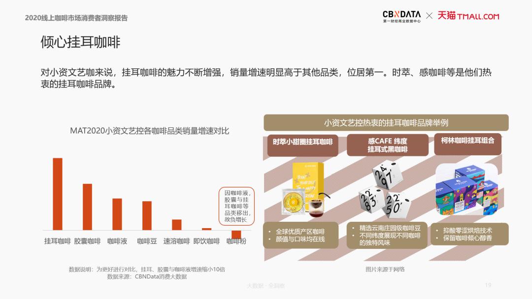 《报告》发现,在所有小资文艺咖购买的咖啡里,挂耳咖啡的线上销量增速快,颜值口味独具一格的时萃、感咖啡等挂耳咖啡品牌迅速“上位”。