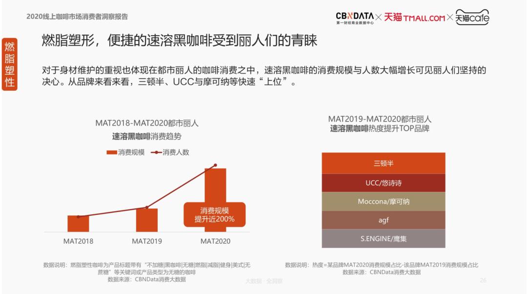 工作重成果,减脂也要足够高效。速溶黑咖啡经过层层考验,成为丽人们常选择的瘦身伙伴,消费规模显著上涨。