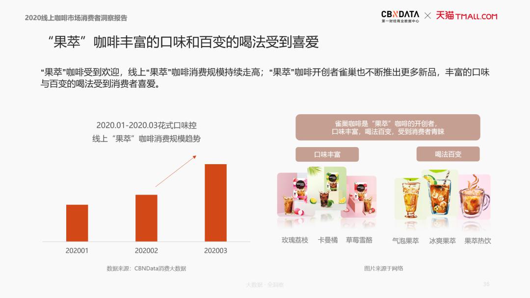 多样的花式咖啡中,果萃咖啡口味丰富、喝法百变,受到Z世代花式咖啡控的喜爱。CBNData《报告》发现,在2020年,线上“果萃”咖啡消费规模高速上涨。