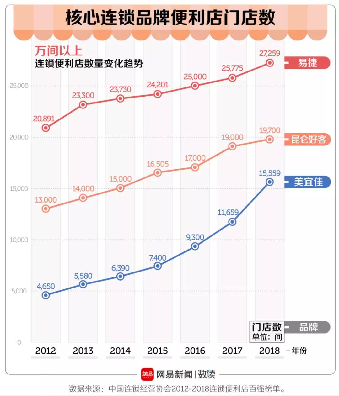 作为中石化的“亲儿子”,几乎有中石化加油站的地方,就有易捷便利店,在开店数量上一骑绝尘,以27259家(2018年)荣膺中国便利店老大。同年,易捷的销售额达到620亿,单店日均超过6200元,超出同行平均水平。
