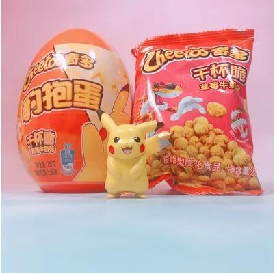 百事旗下奇多品牌日前瞄准盲盒经济,新推出了一款全新盲盒“豹抱蛋”。据悉,此款豹抱蛋每个蛋内含25g草莓味干杯脆一袋以及随机宝可梦正版玩具一个,整套盒蛋共四款宝可梦玩具,分别为皮卡丘、可达鸭、小火龙和胖丁。高度49.3mm。非常小巧可爱。目前此款“豹抱蛋”在天猫、京东均有售,线下渠道也已发售,价位大概在8-10元。
