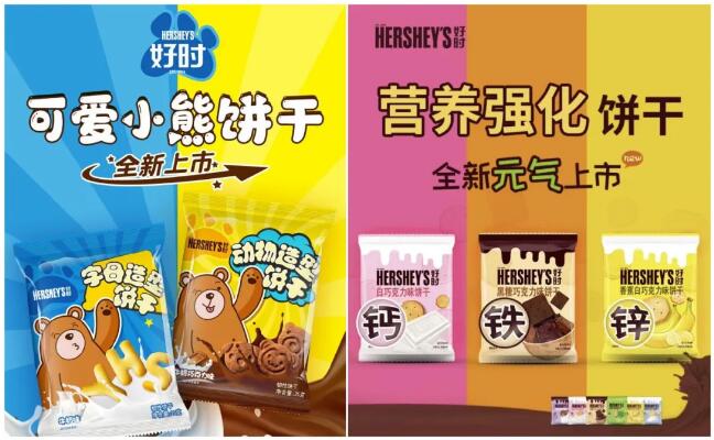 拥有125年历史的好时是北美地区巨大的巧克力制造商,近两年也在加大对休闲零食品类的投入。继去年推出了燕麦饼干后,近日,又再次上线了两款饼干新品,并将其定位为主打儿童市场的健康零食。一款为营养强化饼干,产品中添加了钙铁锌,为儿童成长增添活力。这款饼干主打散称,零售价约合40元+/斤;另一款为主打玩趣的可爱小熊饼干,有子母造型和动物造型两款产品,一盒20包的售价为49.9元,约合2.5元包。目前,两款产品已于好时天猫官方旗舰店首发上市开售。