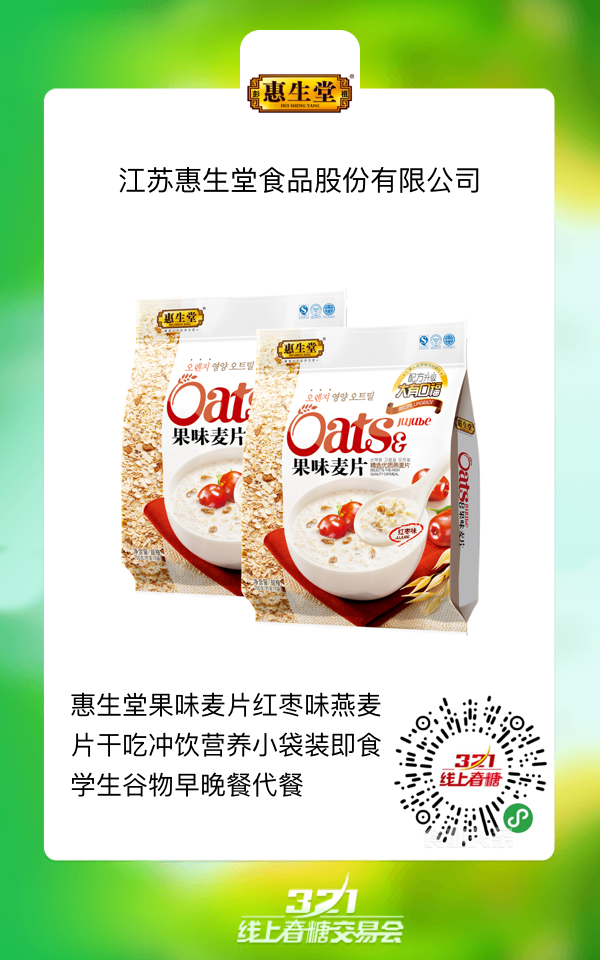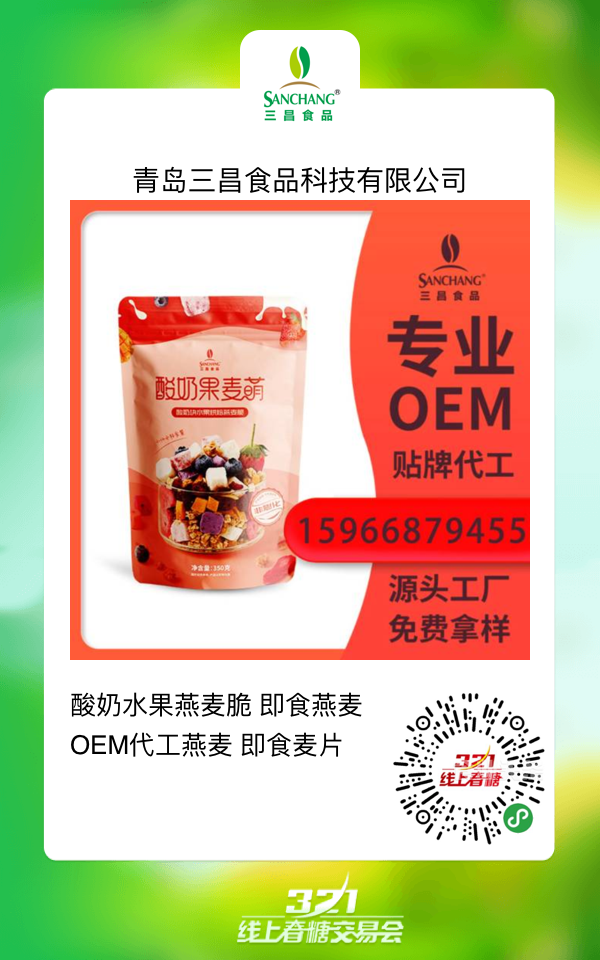 今日,零食参考从“线上春糖”特选出十款燕麦产品,供大家选择。扫描以下各产品图上的小程序码便可进入相关品牌店铺,立即咨询,一件代理!