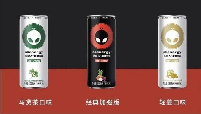 其中,“外星人”主打slogan是“下一代的0糖新能量”。产品0糖0脂,且不含人工色素和人工咖啡因,也不添加激素,采用生姜、马黛茶、L-茶氨酸、维生素等天然成分助力能量提神,添加赤藓糖醇作为甜味剂,并且添加气泡元素补充口感。在气泡水赛道愈发拥挤的情况下,元気森林选择进军能量饮料市场,依旧以健康为产品导向,占位年轻人消费群体。
