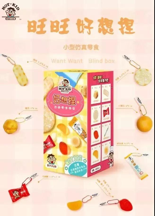 旺旺“好想捏”盲盒,是旺旺食品于2019年双十一期间推出的周边产品,于12月3日正式上线。新品盲盒不卖吃喝卖玩具,仿真零食盲盒“好想捏”系列正式开卖。