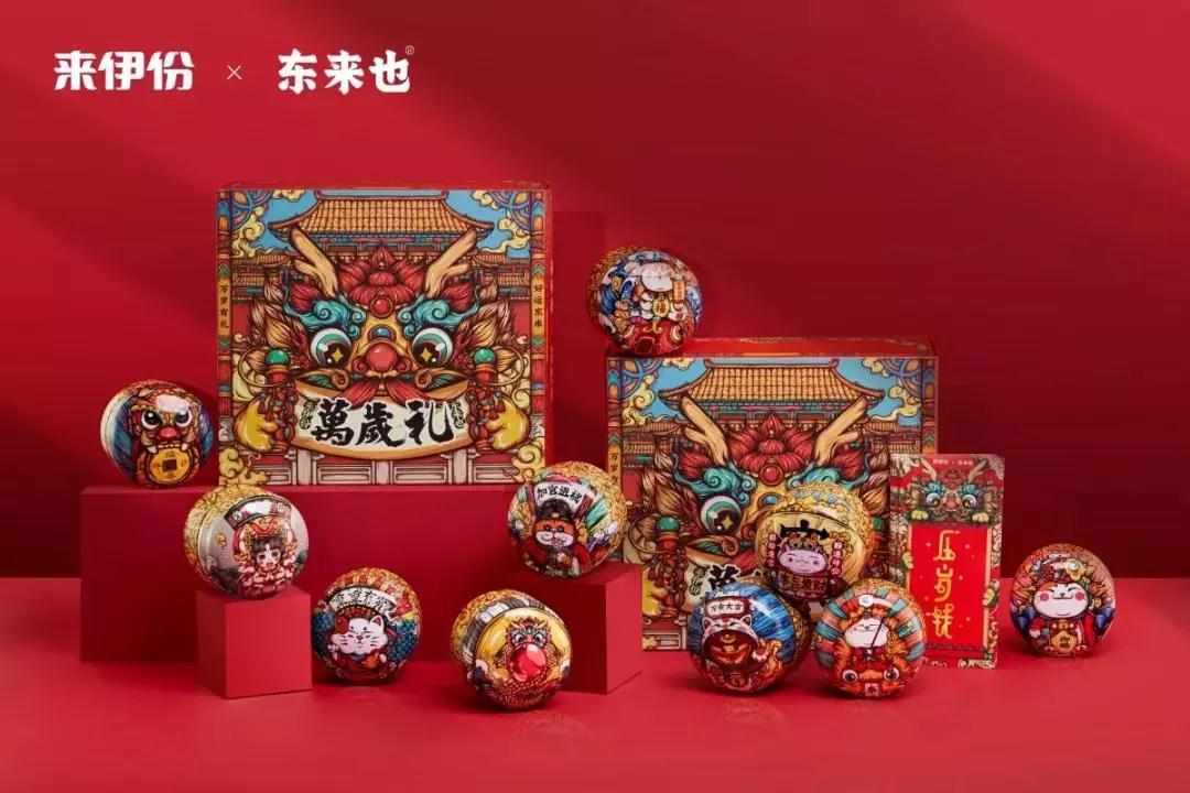 来伊份联手国潮插画东来也推出“万岁礼盲盒”,切中了年轻群体的两大潮流——国潮和盲盒。进口碧根果、开心果、巴旦木仁……这款盲盒把来伊份受欢迎的几款爆款坚果“一罐打尽”,10款坚果搭配10种不同祝福的罐子。
