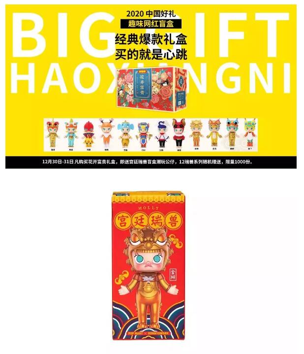 全新升级后购买国潮款花开富贵有机会获赠限量宫廷瑞兽盲盒,寓意瑞兽报福,礼送吉祥,让整个品类日更加新潮趣味。