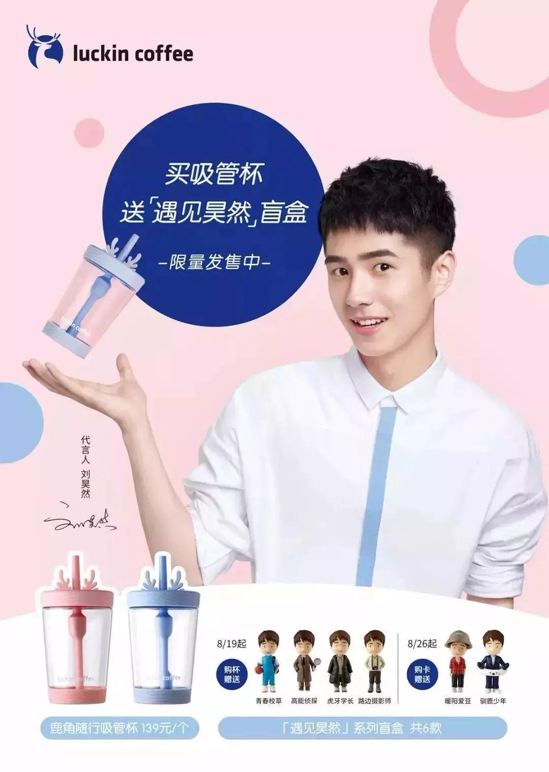 “遇见昊然系列盲盒”是瑞幸推出非卖品,瑞幸咖啡以品牌代言人刘昊然为原型制作了6款玩具盲盒,每款玩偶高80mm,用户通过官方渠道购买以上周边产品,才可随机获赠一个盲盒。
