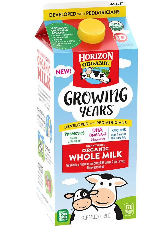 Horizon Organic 与儿科医生合作,为 1-5 岁的儿童确定关键营养素。每杯“Growing Years(成长岁月)”牛奶中含有 50mg DHA Omega-3、胆碱、益生元和高维生素 D。