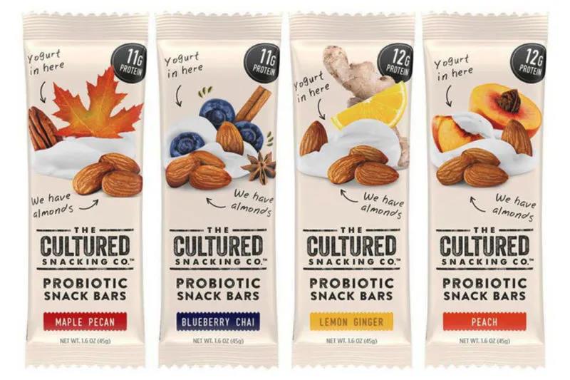 The Cultured Snacking Co. 零食棒含有活性益生菌、酸奶和其他蛋白质成分,目前有蓝莓奇亚籽味、柠檬姜黄味、枫浆核桃味和桃子味;每种口味的零食外包装上,都强调了杏仁和酸奶等关键成分,这些成分能提供 11/12g 的蛋白质;每条零食棒中含有 20 亿个 CFU 益生菌。这种益生菌零食棒包装的便携性,使消费者能够随时随地享用。