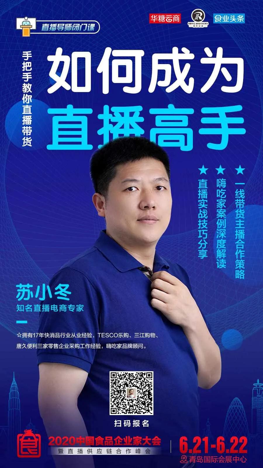 6月21~22日,2020中国食品企业家大会暨直播供应链合作峰将在青岛国际会展中心举行。