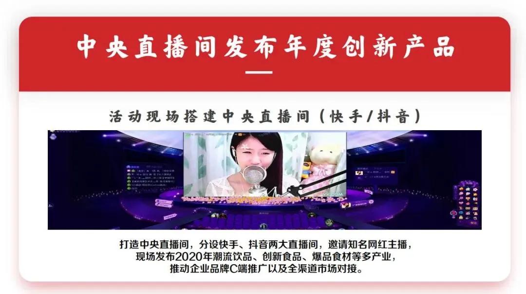 此次大会,将重点打造中央直播间,并分设为快手、抖音两大直播间,邀请知名网红主播,现场发布2020年潮流饮品、创新食品、爆品食材等多产业,推动企业品牌C端推广以及全渠道市场对接。