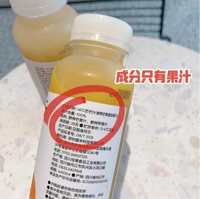 近日,喜茶旗下子品牌喜小茶宣布推出第二个厂牌“喜小茶瓶装厂”,首款瓶装NFC果汁在喜茶内地门店全面上市,目前有芒果和桃子两个口味,产品宣称0添加剂、0脂肪、不额外加糖、不加一滴水,冷灌装保存营养成分,全程冷链。