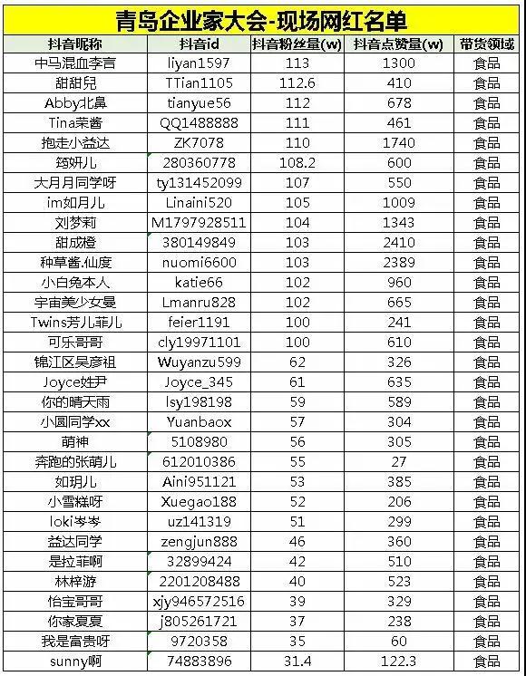 (网红主播部分名单)