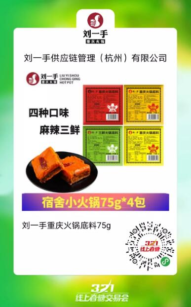 刘一手供应链管理(杭州)有限公司副总经理刘小米表示,当前很多家庭人数变少,独立小包装小火锅底料的出现,尤其迎合了单身白领一族的吃火锅需求,安全卫生又能保证新鲜度,人多人少、任何麻辣菜品都可适用,是未来极具潜力的火锅底料爆品之一。