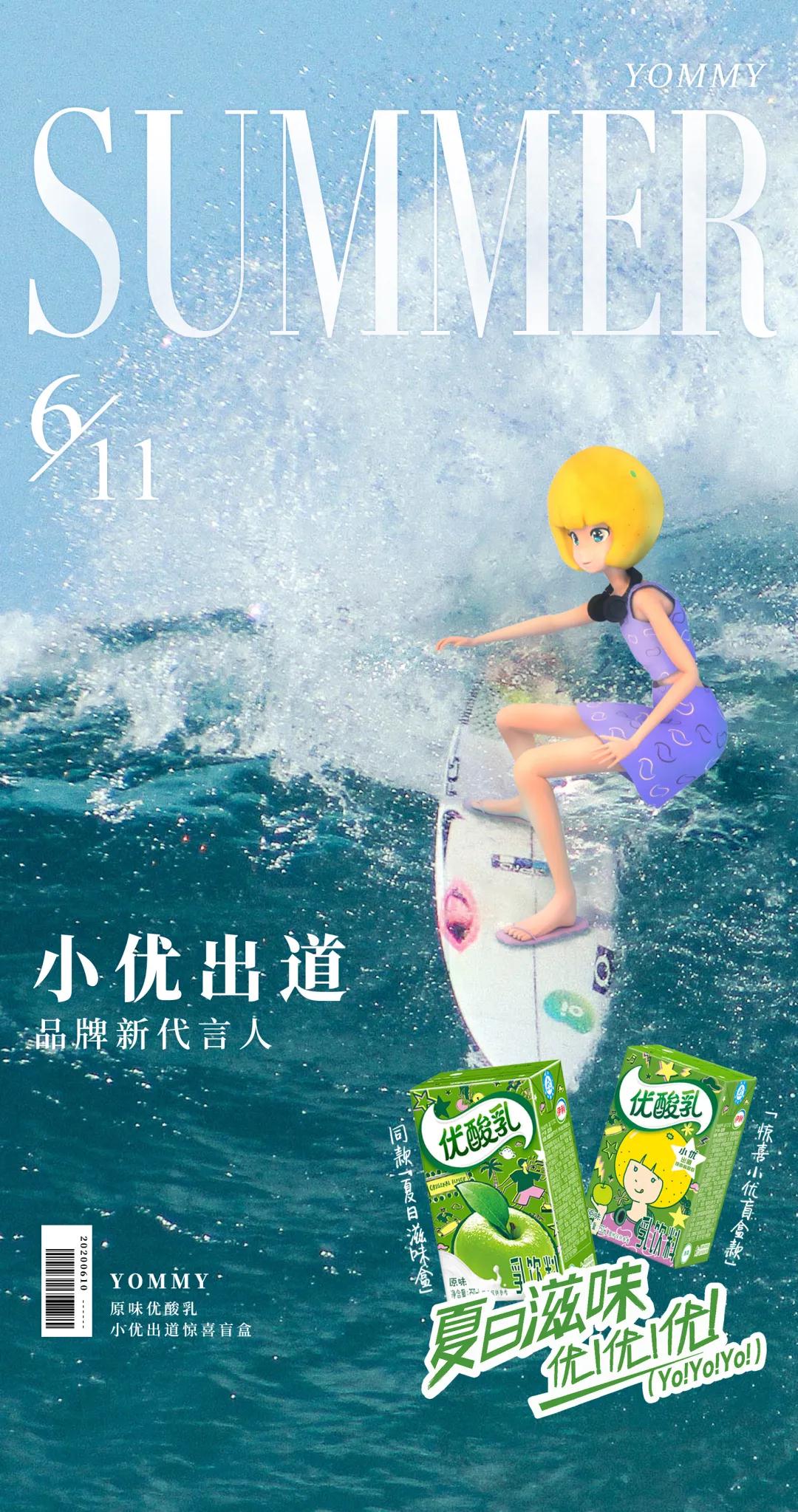 与其他品牌不同的是,优酸乳打造的“小优”IP既有二次元的可爱、萌,也有酷玩青年的高街元素,更特别之处是基于受众人群的个性特色及兴趣偏好,与夏日场景巧妙结合。沙滩、冲浪、泳池、树荫……伴随小优出道,一股鲜明的夏日气息迎面而来,夏日悠悠与冰爽饮品的信息传递和场景营造生动而明快。