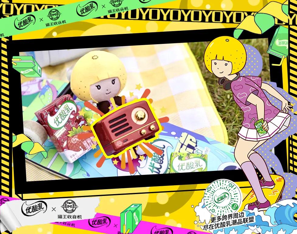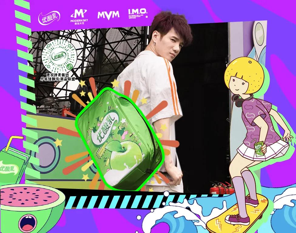 事实上,除了打造“真人秀”风格的草莓音乐节,优酸乳在营销上还有诸多妙笔。其中,通过联合摩登天空、北海怪兽(MAGICBUS)、猫王收音机,跨界品牌潮品联盟,优酸乳以一种更为酷炫的方式突破原有品牌的场景流量,让人们全面感知“国民潮饮”的魅力。