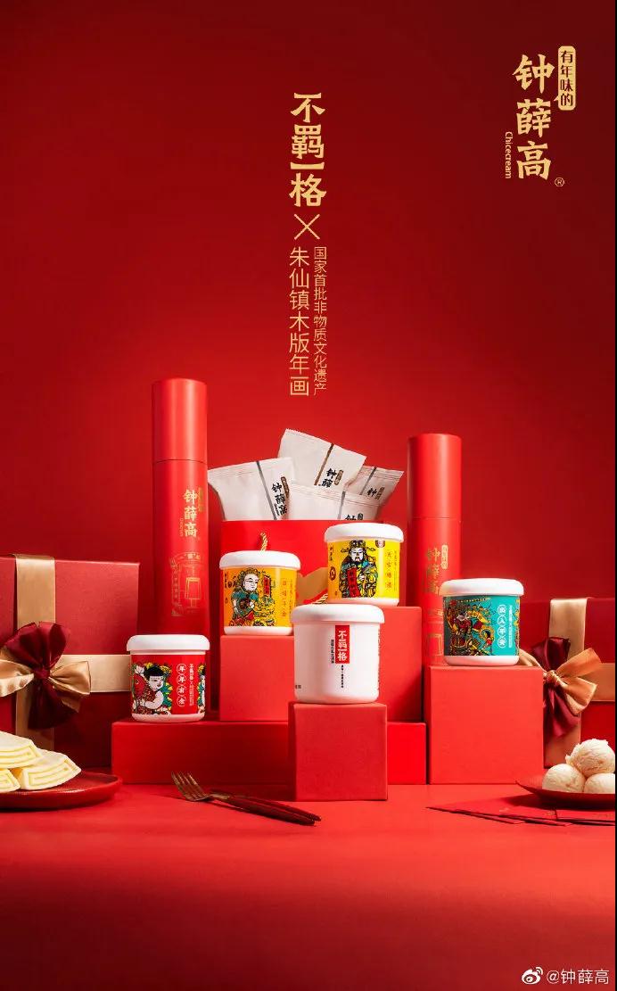 钟薛高推出的不羁一格杯冰淇淋,精选自海拔 1450 米阿尔卑斯高山牧场有机奶,配方不加一滴水,上线 10 个小时一万杯售罄。每一期的不羁一格杯都有不一样的风格,以广告杯和吉祥杯为例:510 国潮上线的广告杯,把“搬家”“开锁”“中介”“刻章”的技能全部做足,满满当当的贴全了小广告,让大家回忆起小时候贴满小广告的电线杆;年货节上线的吉祥杯,同一批非物质文化遗产朱仙镇木版年画合作,将多幅寓意吉祥的年画印上杯身,设计生动灵巧,引人入胜。