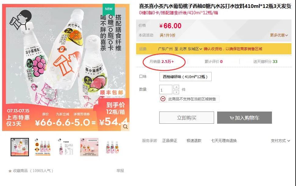 今天,新品率先上线喜茶北京、上海、广州、深圳门店/喜茶百货/喜茶天猫官方旗舰店/广东地区7-11便利店。在7-11便利店,产品活动价为9.9元/两瓶。