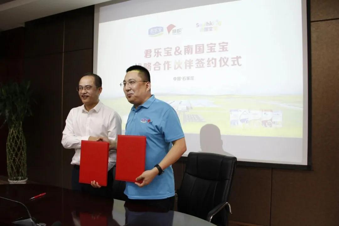 7 月 17 日,君乐宝旗帜奶粉与海南南国宝宝、广西爱婴宝两大婴童连锁举行战略合作沟通会,并正式签署五年战略合作计划。君乐宝乳业集团副总裁、奶粉事业部总经理刘森淼,南国宝宝执行董事兼总经理刘江文,爱婴宝董事长戴国全等出席签约仪式,并就后续合作事宜进行了进一步的沟通交流。