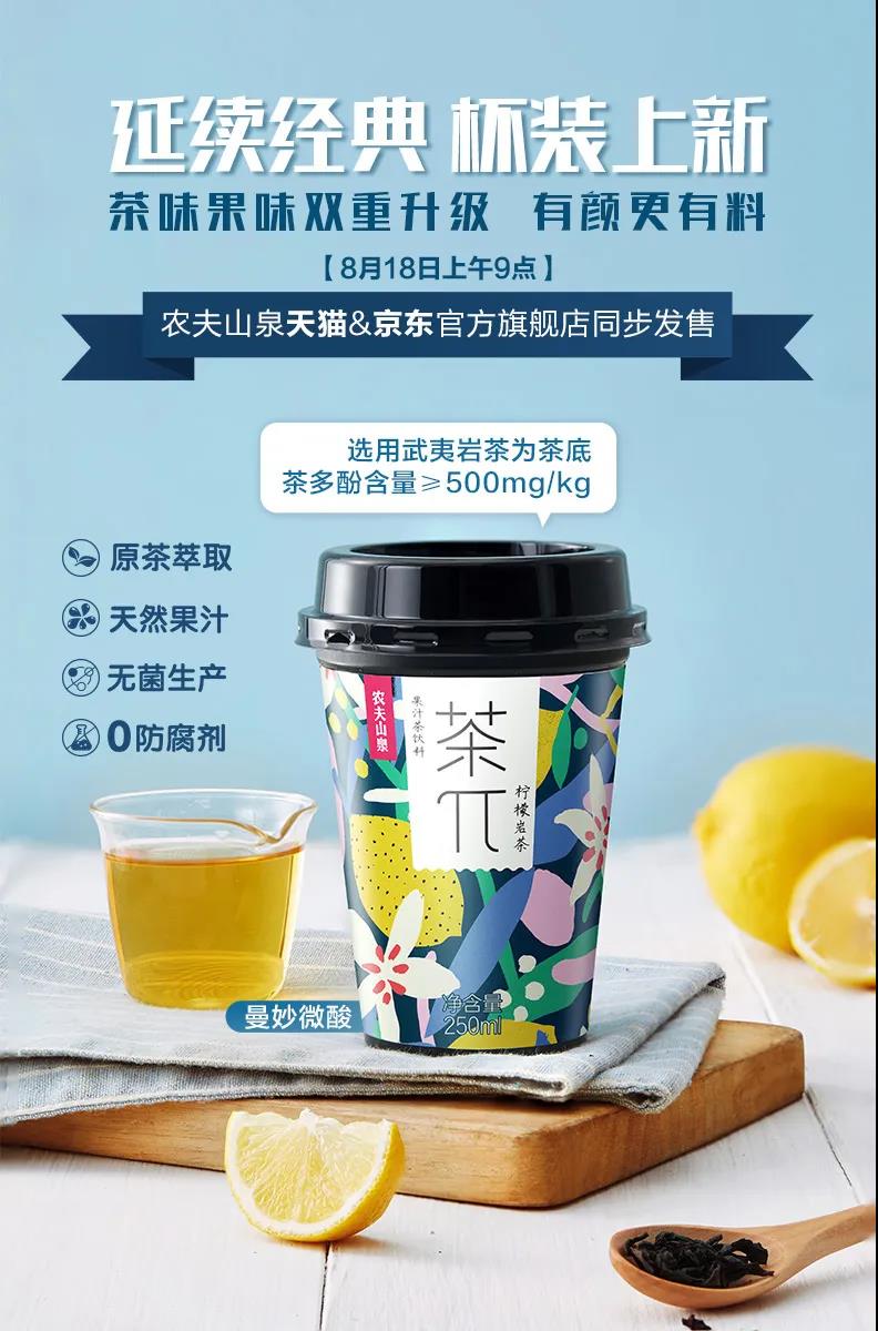 今天,农夫山泉发布消息称,茶π推出全新杯装系列产品,共有柠檬岩茶、芒果茉莉、百香果乌龙茶三种口味,并在天猫和京东旗舰店开启预售。新品原价为12.8元/杯/250ml,上新价39.9元/箱(6杯装),保质期为6个月。