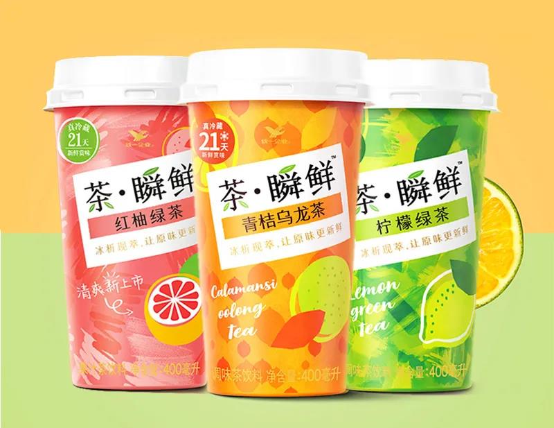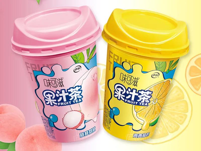 杯装果汁茶的异军突起也吸引了众多大咖的入局。2018年,统一推出杯装低温冷藏新品茶瞬鲜;2019年末,娃哈哈也推出杯装果汁茶桃源茶事;4月,伊利推出了首款杯装味可滋果汁茶……