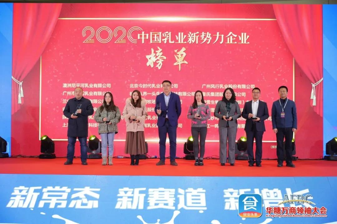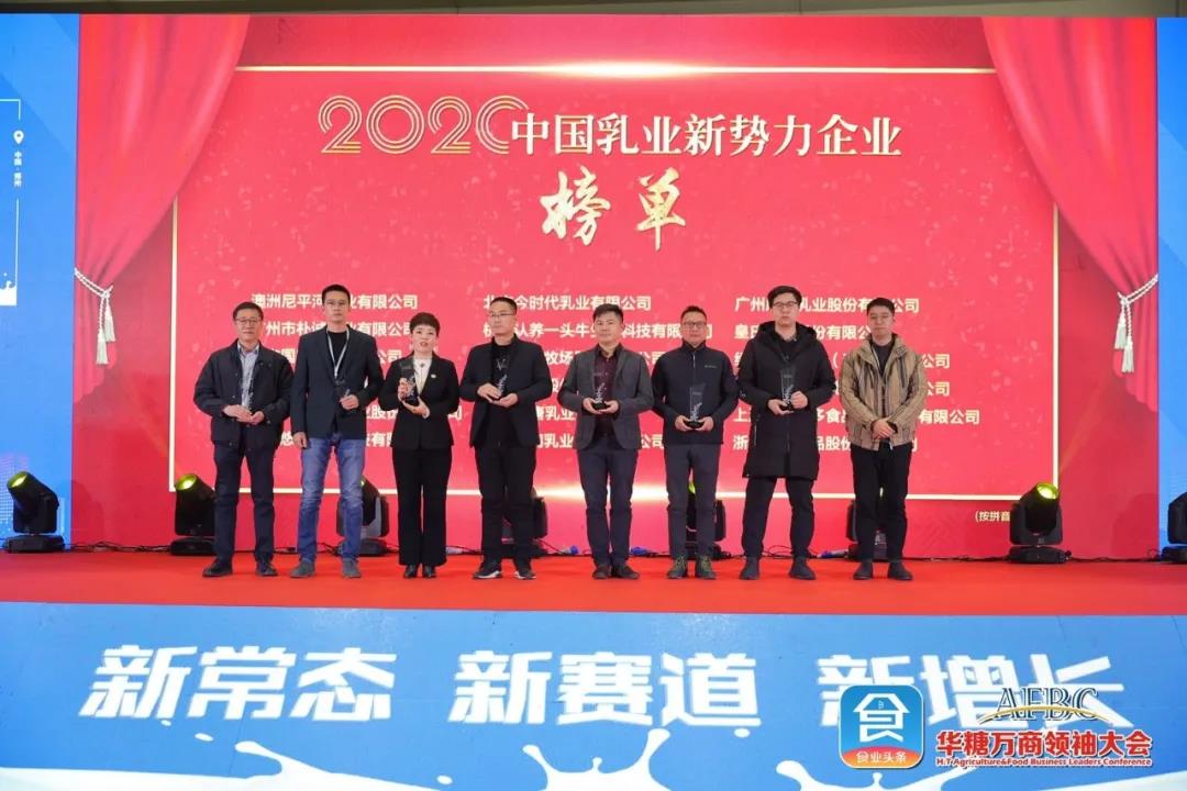 在 12 月 7 日举办的“2020 中国乳业新势力发展论坛”(新常态 新赛道 新增长!2020中国乳业新势力发展论坛暨首届新乳业·万商乳品采购节成功举办!)上,“2020中国乳业新势力企业”榜单重磅发布,获奖企业代表现场登台领奖。