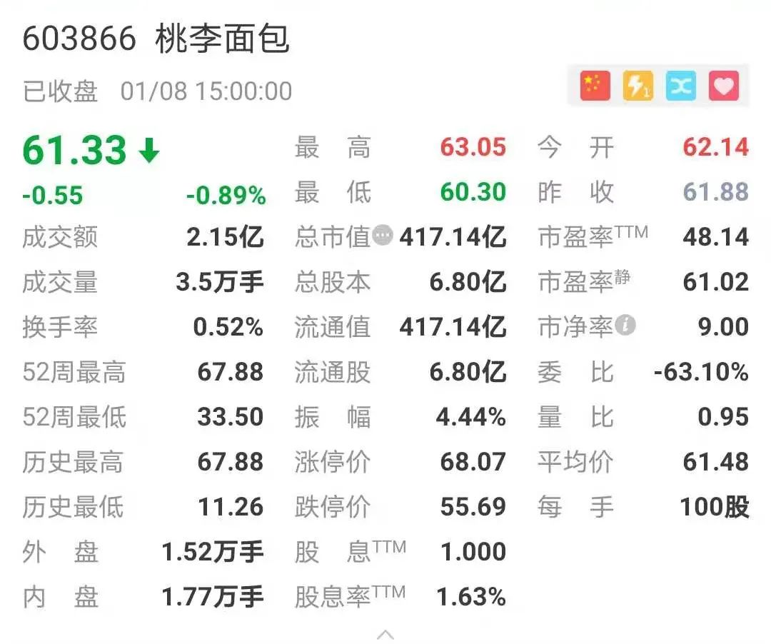 作为一家地域品牌起家的传统企业,桃李面包这几年的发展速度惊人,上市第五年市值高达417亿元人民币(截至1月8日收盘)。