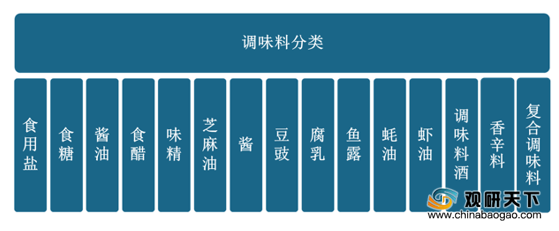 按产品功能分类,调味品可分成15大类,涵盖酱油、食醋、盐、味精、复合调味品等等。